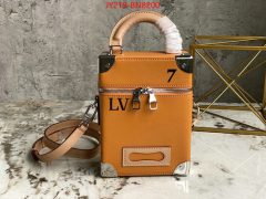 $: 255USD Size: 21.5 x 15.0 x 7.0cm M45785 orange silk screen box bag series XNBA Handle Trunk handbags gather square configuration, metal corners and rivets, inheriting the classic hard box design. The leather handle on the top conveys a vintage feel, and the detachable leather shoulder strap provides a comfortable shoulder. The double zipper pulls are convenient to open ample internal space, which can accommodate mobile phones and wallets.,,